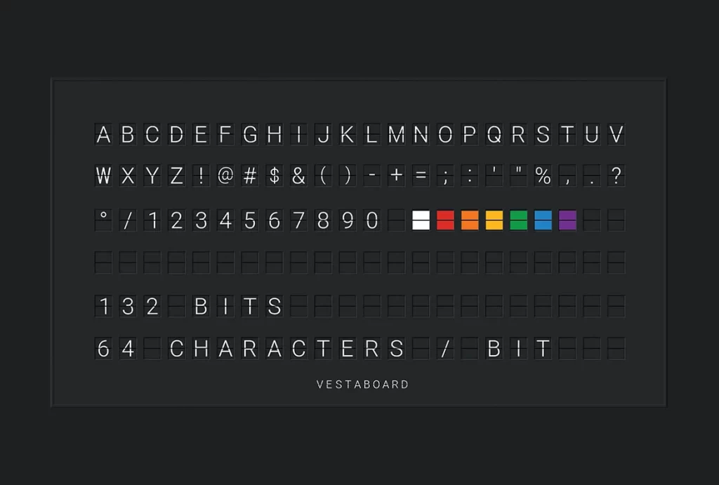 Every Vestaboard is comprised of 132 modular character units we call Bits. The design makes for easy access to your Vestaboard if it’s ever needed by simply removing the beautiful aluminum mask and frame*.